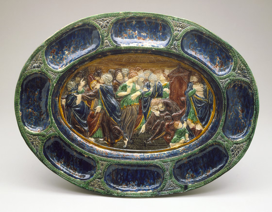 Large Oval Dish with Scene of Christ and the Woman Taken in Adultery