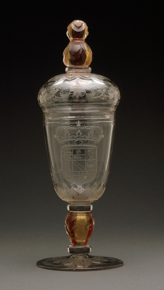 Free-blown, cut and engraved glass