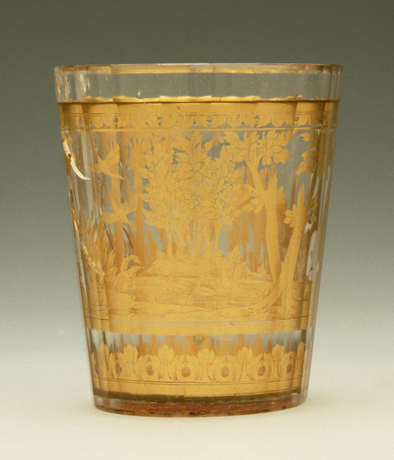 Height: 3 in. (7.7 cm); Diameter of rim: 2 7/16 in. (6.2 cm); Diameter of base: 1 15/16 in. (5 cm)