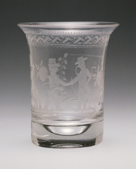 Height: 4 11/16 in. (12 cm); Diameter of rim: 3 15/16 in. (10.1 cm); Diameter of base: 4 5/16 in. (7 cm)
