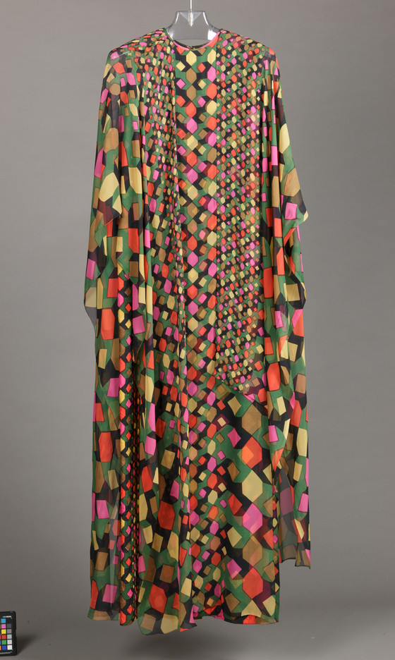 Silk plain weave (crepe chiffon), printed and silk double cloth, printed.