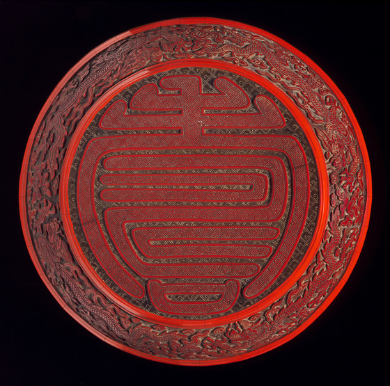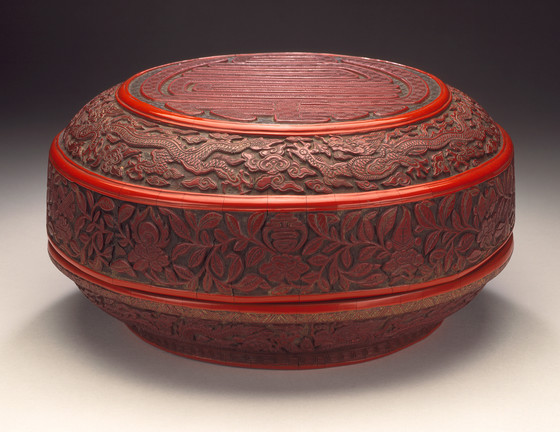 Box (He) with Longevity (Shou) Character, Eight Buddhist Symbols (Bajixiang), and Dragons