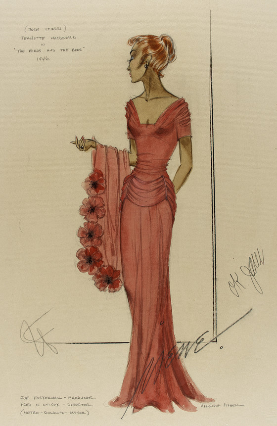Costume Sketch of Jeannette Macdonald as Louise Rayton Morgan in the Metro-Goldwyn-Mayer Production, 'Three Daring Daughters,' also known as 'The Birds and the Bees'