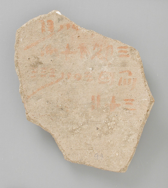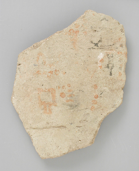 Ostracon with Architectural Drawing and Hieratic Inscription