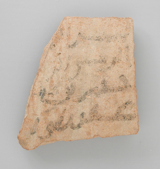 Small Ostracon with Large Scale Arabic Inscription