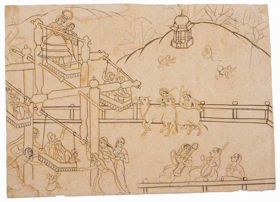 Krishna and the Gopis Ride a Ferris Wheel at a Village Festival