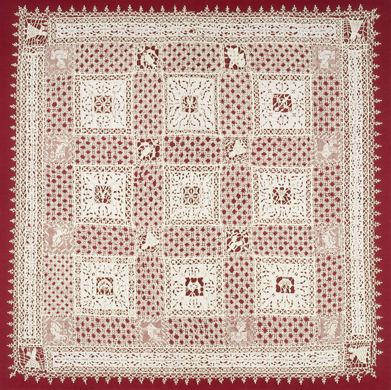 Linen reticello-type needle lace with cutwork and filet embroidery, edged with bobbin lace