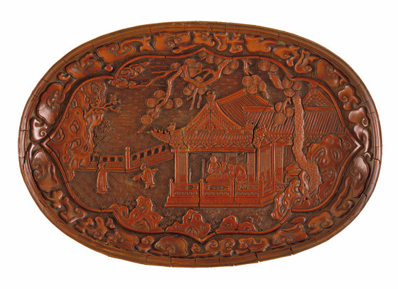 Oval Tray (Duoyuan Pan) with Pavilion on a Garden Terrace