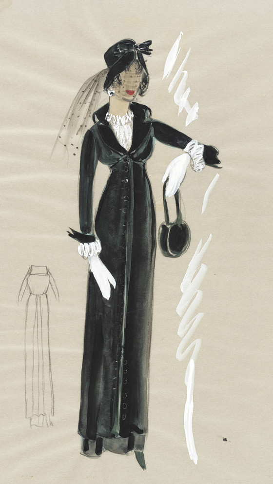 Costume Sketch of Jean Simmons as Desirée Clary in the 20th Century Fox Production of 'Desirée'