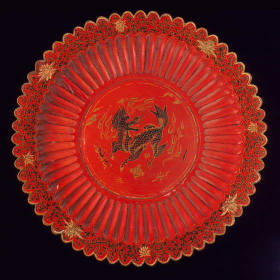 Footed Tray in the Form of a Chrysanthemum with a Fantastic Animal (Kirin in Japanese)