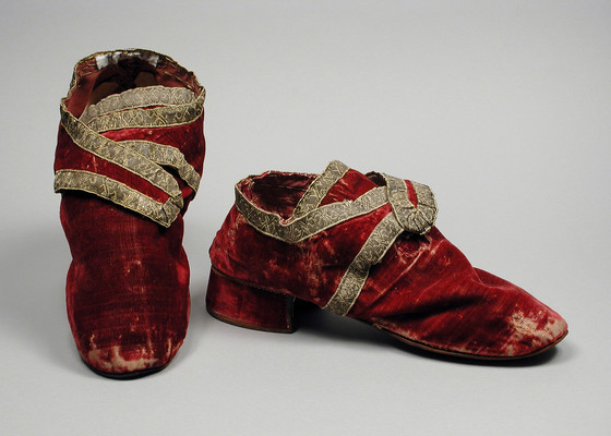 Silk velvet with metallic braid, leather