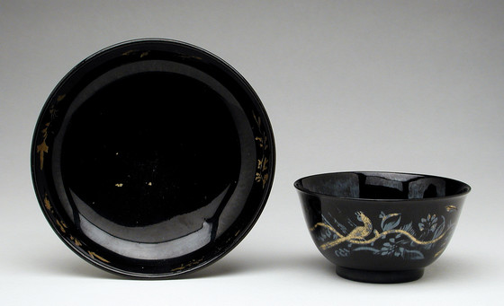 a) Teabowl: Height: 1 5/8 in. (4.13 cm), Diameter: 3 in. (7.62 cm); b) Saucer: Diameter: 4 1/4 in. (10.8 cm)