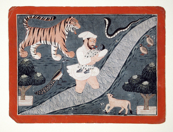 Raja Sidh Sen of Mandi (r. 1684-1727) as Vasudeva Carrying Baby Krishna over the Yamuna River