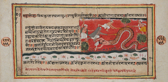 The Python Sudarshana Swallows Nanda (recto), Torching of the Python Sudarshana (verso), Folio from a Bhagavata Purana (Ancient Stories of the Lord)
