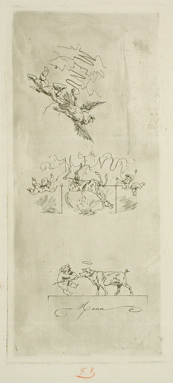 Menus au cochon nimbé, au Cheval à la broche, au Dindon volant, au Paon, au Jockey vainqueur et aux Violettes