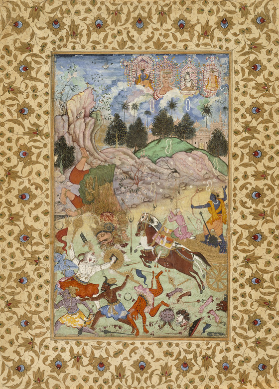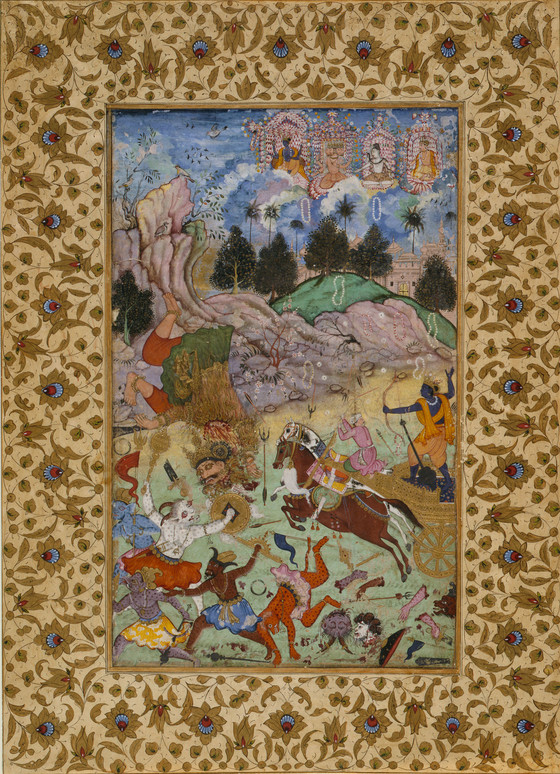 Pradyumna Kills Shambara (recto), Calligraphy (verso), Folio from a Harivamsha (Lineage of Hari [Vishnu])