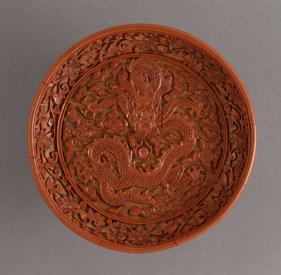 Carved red lacquer on wood core