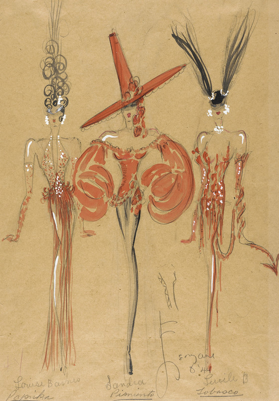 Costume Sketch of 'Paprika,' 'Pimiento,' and 'Tobasco' in the 20th Century Fox Production, 'Diamond Horseshoe'