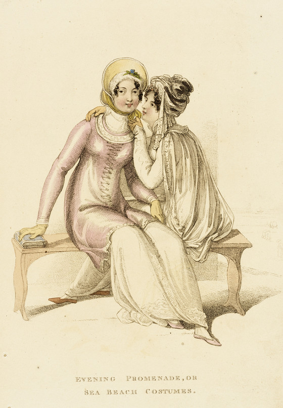 Fashion Plate, 'Evening Promenade, or Sea Beach Costumes' for 'The Repository of Arts'