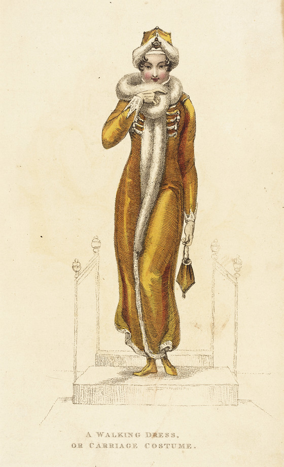 Fashion Plate, ‘A Walking Dress, or Carriage Costume’ for ‘The Repository of Arts’