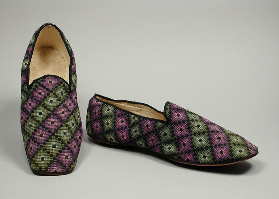 Linen canvas with wool needlepoint (Berlin work) and leather