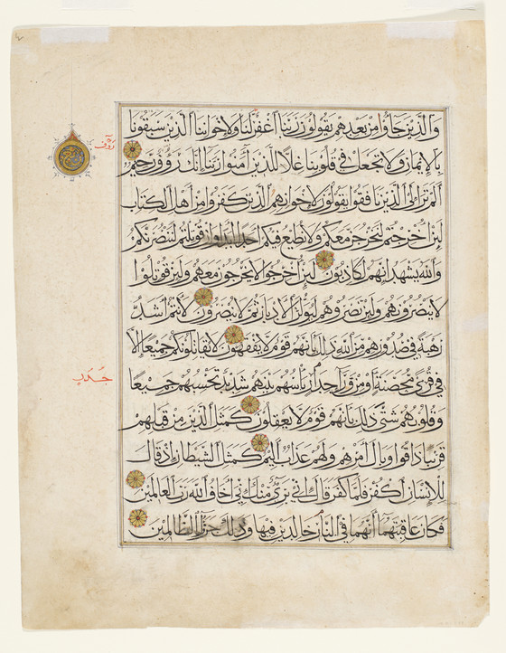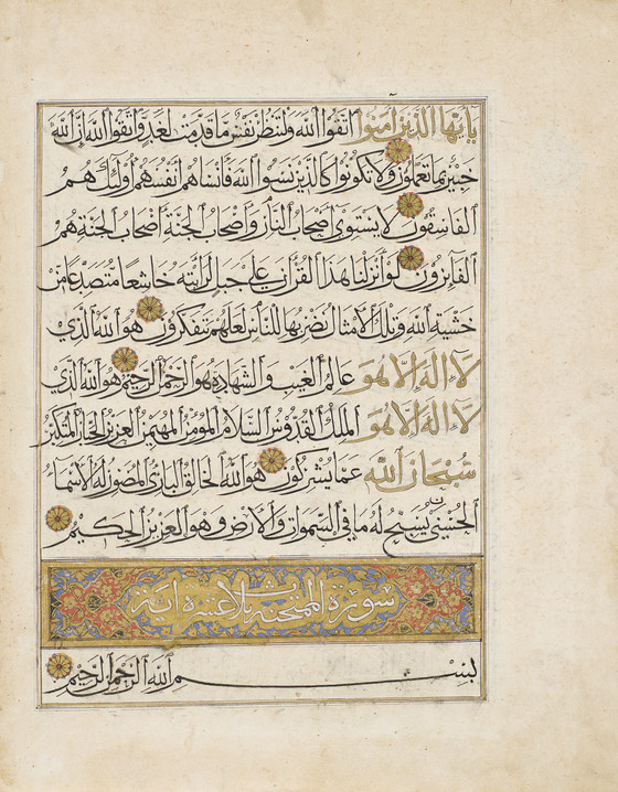 Page from a Manuscript of the Qur'an (59:10-17; 59:18-24, 60:sura heading)
