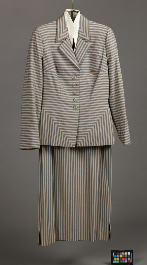 Jacket: silk/wool plain weave, linen plain weave; Skirt: silk/wool plain weave