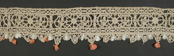 Silk and linen reticello needle lace with silk tassels