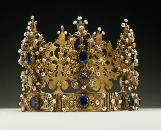 Silver gilt, pearls, glass paste