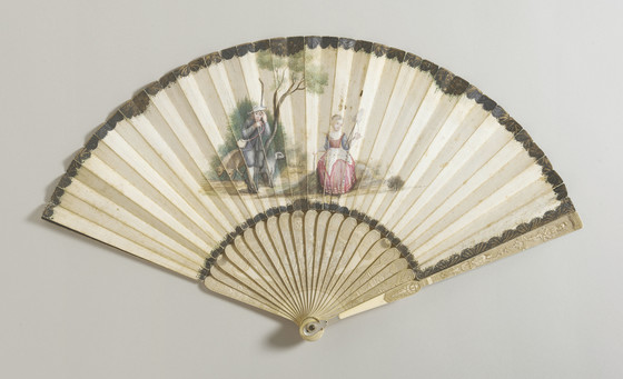 Vellum leaf with gouache and gold paint, ivory sticks and guard