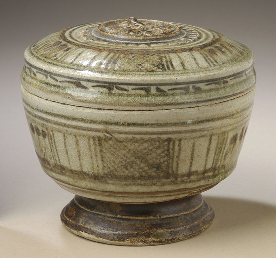 a) Lid height: 1 1/16 in. (2.7 cm); a) Lid diameter: 4 1/8 in. (10.48 cm); b) Body height: 2 11/16 in. (6.83 cm); b) Body diameter: 4 1/8 in. (10.48 cm); Overall height: 3 1/2 in. (8.89 cm); Overall diameter: 4 1/8 in. (10.48 cm)