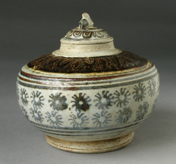 Stoneware with underglaze brown painted decoration and partial brown glaze