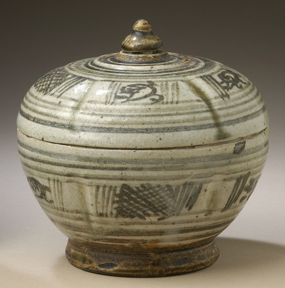 a) Lid height: 2 1/8 in. (5.4 cm); a) Lid diameter: 4 15/16 in. (12.54 cm); b) Body height: 2 7/8 in. (7.3 cm); b) Body diameter: 4 15/16 in. (12.54 cm); Overall height: 3 15/16 in. (10 cm); Overall diameter: 4 15/16 in. (12.54 cm)