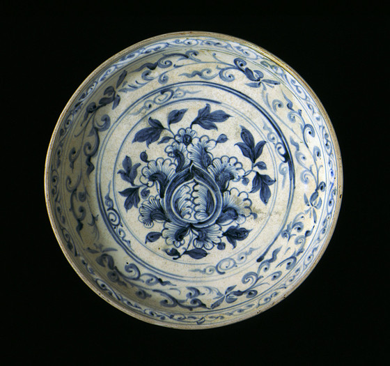 Dish with Peony Spray and Floral Scrolls
