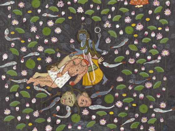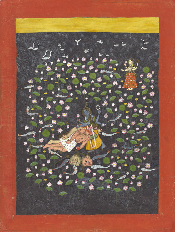 Vishnu Vanquishing the Demons Madhu and Kaitabha (recto), Text (verso); Folio from a Devimahatmya (Glory of the Goddess)