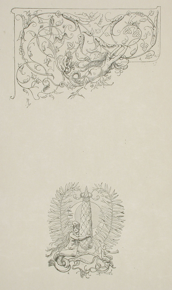 Fleuron à la naïade; Cul-de-lampe à la pomme de pin