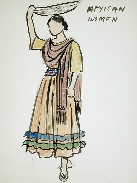 Costume Sketch of Mexican Women in 20th Century Fox's Production of 'Seven Cities of Gold'