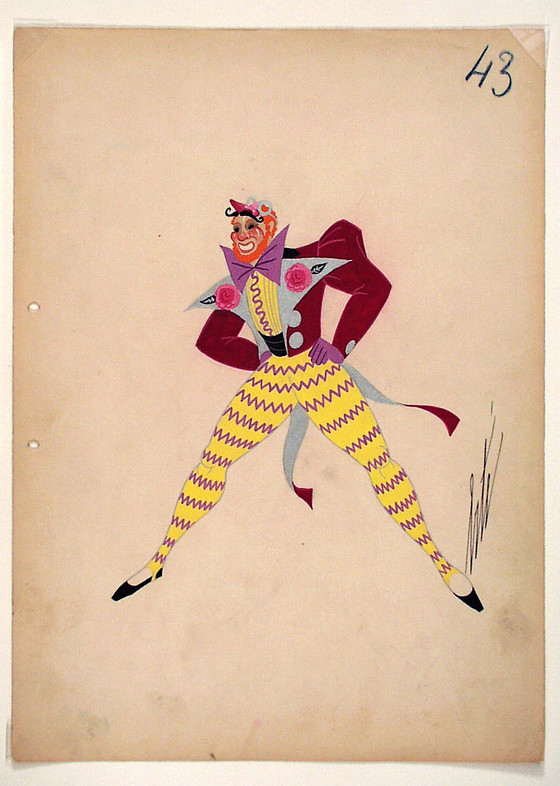 Costume Sketch, 'Premier Masque Hilare (First Laughing Mask)' for Le Bal de l'Opera at the Bal Tabarin