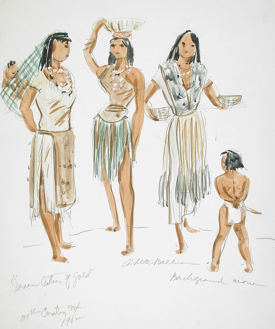 Costume Sketch of Background Women in 20th Century Fox's Production of 'Seven Cities of Gold'