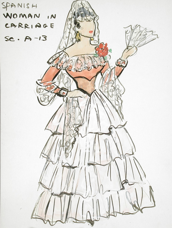 Costume Sketch of Spanish Woman in Carriage Scene A-13 in 20th Century Fox's Production of 'Seven Cities of Gold'