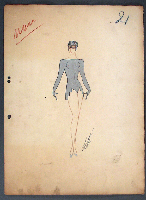 Costume Sketch for the Ballet 'Métal' at the Bal Tabarin