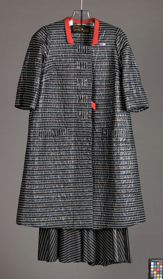 a) Coat: Cotton plain weave, polished and quilted, silk grosgrain ribbon
