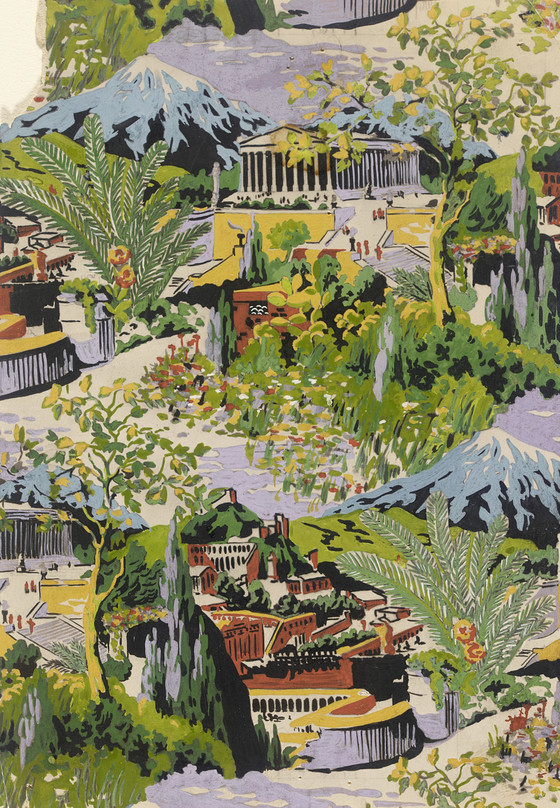 Textile Design, 'Acropolis' from Seven Wonders of the World Series