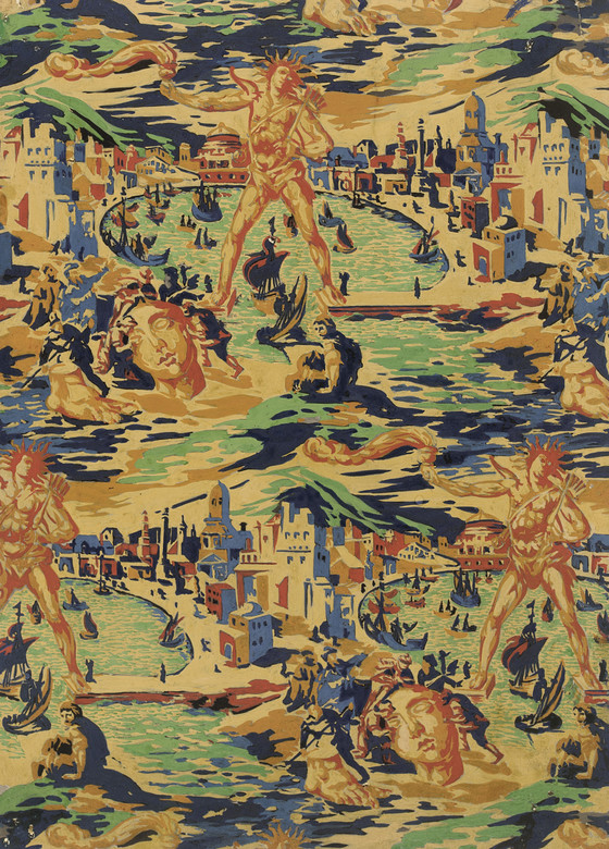 Textile Design, 'Colossus of Rhodes' from Seven Wonders of the World Series