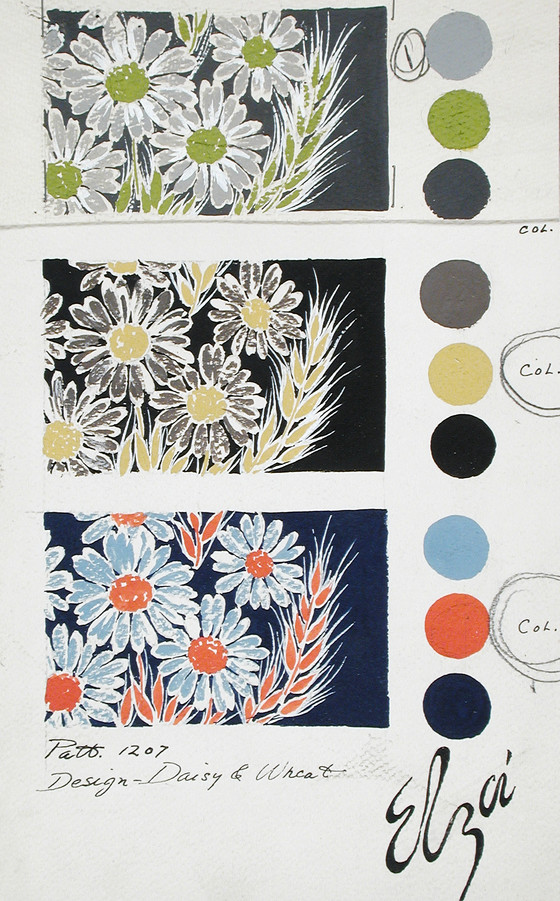 Textile Design, 'Daisy and Wheat' (Pattern 1207) in 3 Colorways
