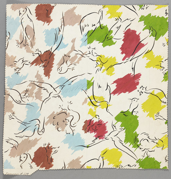 Textile Design of Two Colorways from 'Birds' (?) Series (Pattern 230)