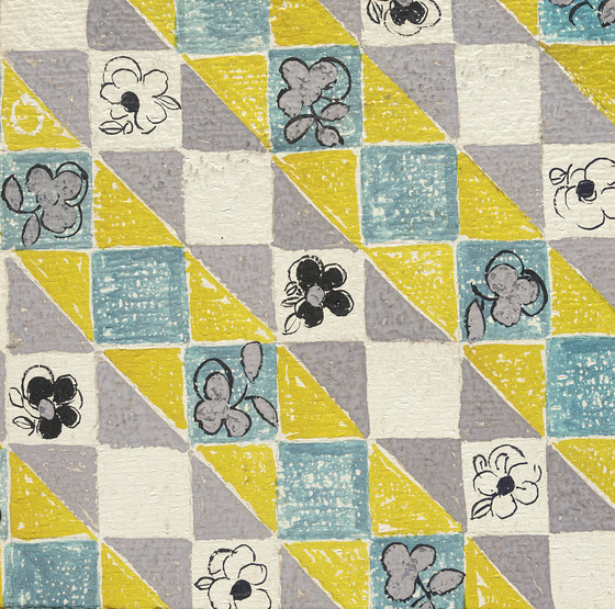 Untitled Textile Design of Flowers in Checkerboard Pattern
