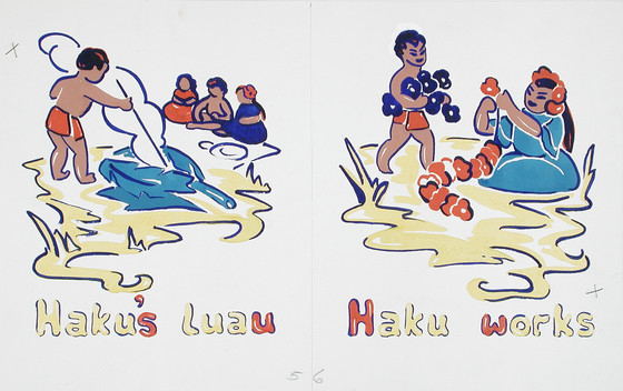 Textile Design for Series of Doilies, 'Haku the Master Boy', Numbers 5 and 6: ''Haku's Luau' and 'Haku Works'