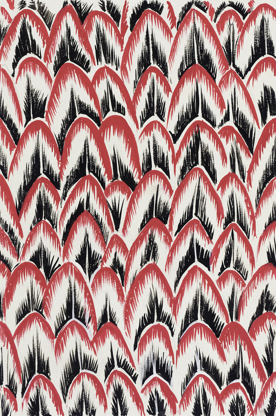 Textile Design, 'Feathers' from 'Birds of a Feather' Series; Red/Black Colorway