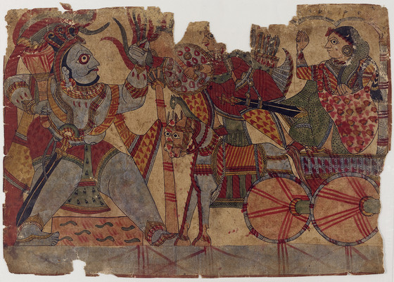Ghatotkacha Attacks Abhimanyu, Scene from the Story of the Marriage of Abhimanyu and Vatsala, Folio from a Mahabharata ([War of the] Great Bharatas)